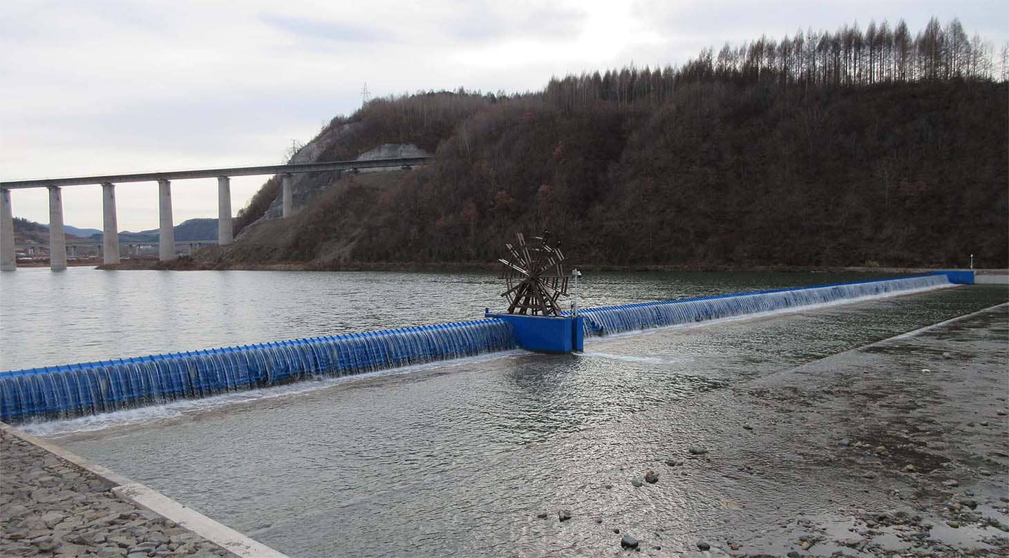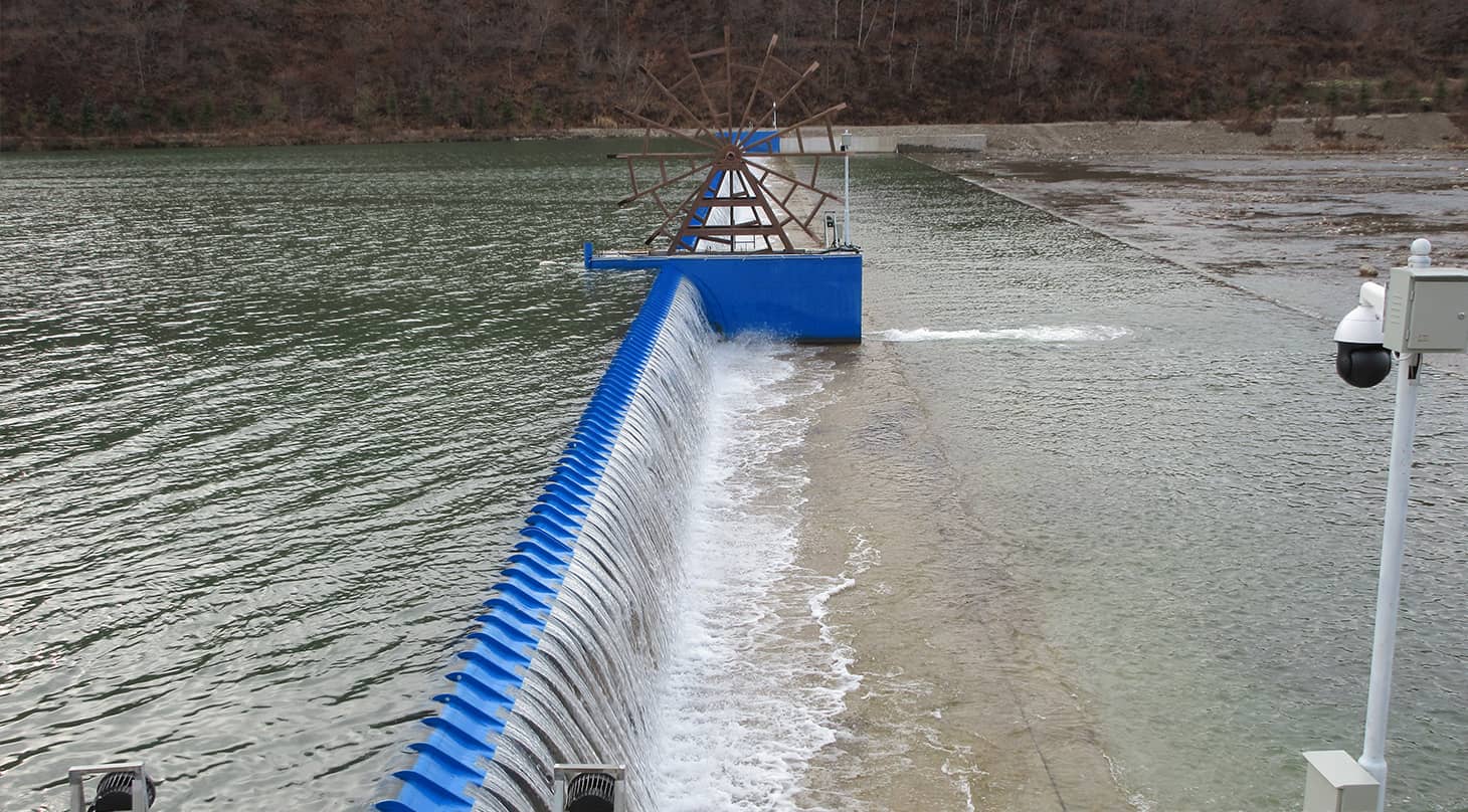 工程介紹:本工程采用定制景觀閘型,將閘景、水景、水車、魚道等多個水利景觀元素有機結合, 并在市區段形成完整人工水面,提高當地水利景觀建設水平。