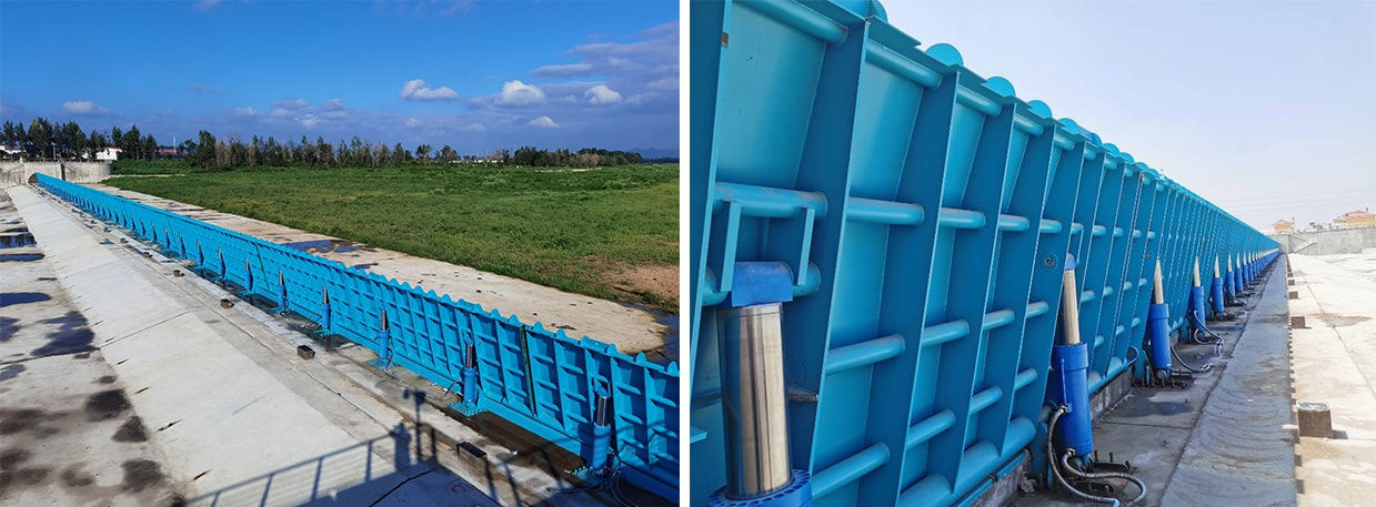 無動力降落整體式合頁閘施工工法,攻克了洪汛期無動力降閘的難題,保障了河道行洪的安全。該項工法自2011年開始研發,自2012年至今,完善無動力降閘機械、液壓、電氣聯合控制的設計、生產、安裝等技術文件。經理論研究、試驗、工程投入使用、再理論研究等反復檢驗流程,現整體式合頁活動閘的無動力降閘技術已成熟并迅速在山東、遼寧、吉林等省市及國外工程中應用,技術應用效果良好。