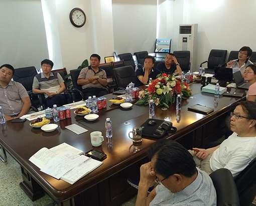 琿春市領(lǐng)導(dǎo)到中水科對合頁壩進行考察調(diào)研,水利事業(yè)部技術(shù)人員針對合頁壩技術(shù)問題與琿春市領(lǐng)導(dǎo)展開了深入討論。